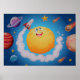 Moon mit fröhlichem Gesicht auf dem Hintergrund der Weltraumgalaxie