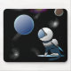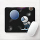 Space Cat Astronaut fliegen in einer futuristischen Science-Fiction Illustration.