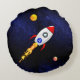 Raumrakete und Monogramm auf der Galaxie Rundes Kissen