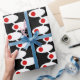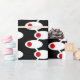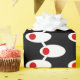 Dieses Verpackungspapier hat ein modernes Design von weißen Ovalen Mitte des Jahrhunderts mit roten Kreise durch weiße Linien auf einem Feld von schwarz verbunden. Woll verschiedene Farben? Nachricht.