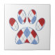 Karikaturenpaw in weiß, blau und rot. Dekorative Kacheln für Zuhause und Unternehmen wie Heimtierläden. Geschenkidee für Hundefreunde.
