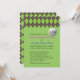 Grüne und braune Raute, Band und Golf Ball Golfing themed monogram Hochzeit Einladung. Der Text kann personalisiert sein. Gut, wenn Braut und Bräutigam beide Golfliebhaber sind. Beachten Sie, dass es sich um ein flaches, bedrucktes Design ohne 3D- oder Hochstickereien handelt.