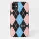 Raute schwarz, grau und rosa Monogramm Case-Mate iPhone Hülle