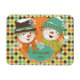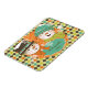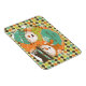 Unsere Raute Snowmen Holiday personalisierte Flexi-Magnet verfügt über ein Schneepaar in Oberhut, Winterhut, gestreiftem Schal und Karottennasen auf orangefarbenem, aquamarinem, Senf-, Braun- und Creme-Raute-Hintergrund, kleine Polka-Punkte auf Orange mit Schneeflocken aus Weiß und ein aquamarines Banner, das Sie leicht mit einem Namen oder anderen Text personalisieren können.