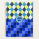 Bleibe für Schule, Zuhause oder Arbeit mit einem preppy-Style-Planer. Schattierungen von blauen und gelben Karos, die vom Karner Blauen Schmetterling inspiriert wurden. Personalisieren Sie Ihre Daten mit dem Initial, dem Namen und dem Jahr.