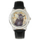 Uhr, Klassische Damenuhr mit schwarzen Lederarmband