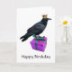 Ein Rabe mit einer Krone auf einem Geschenk gekrönt. Eine elegante Geburtskarte.