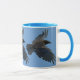 Ein fliegender schwarzer Raven gleitet über die Tasse dieses Tierliebhabers. Sie können Ihren eigenen Text hinzufügen und\oder die Hintergrundfarbe ändern, um Ihre Bedürfnisse Anzug.