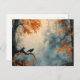 Raven in Misty Autumn Forest Postkarte