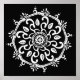 Dieses weiße Mandala sitzt auf einem schwarzen Hintergrund. Teil der Payon Mandala Kollektion.