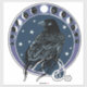 Der Stammesraven, der in einem Sternenkreis und Mondphasen sitzt, zeichnete alle einen Jugendstil vor dem Hintergrund von Blues und lila
