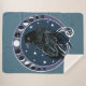 Der Stammesraven, der in einem Sternenkreis und Mondphasen sitzt, zeichne alle einen Jugendstil vor dem Hintergrund von Blues und Purpur