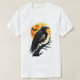 Gothic raven on a skeletal chest motif against an orange moon with bats—bold nocturnal print ideal for autumn apparel and edgy statement tees.