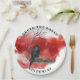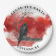 Starker schwarzer Rabe auf einem nackten Ast über einem blutroten Hintergrund. Personalisieren Sie mit Ihrem eigenen Text.