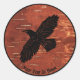 Eine einfache, schwarze Silhouette eines Raven (Corvus corax) auf einem Hintergrundbild der rötlichen Rückseite (innen) der Birkenrinde. Das Rabe-Bild hat einen leichten "rauen" oder "abgenutzten" Effekt. Fügen Sie Ihren eigenen Text hinzu.