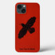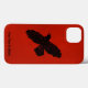 Eine einfache, schwarze Silhouette eines Raven (Corvus corax) auf einem roten, lederfarbenen Hintergrund. Das Rabe-Bild hat einen leichten "rauen" oder "abgenutzten" Effekt. Fügen Sie Ihren eigenen Text hinzu.