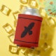 Eine einfache, schwarze Silhouette eines Raven (Corvus corax) auf einem roten, lederfarbenen Hintergrund. Das Rabe-Bild hat einen leichten "rauen" oder "abgenutzten" Effekt. Fügen Sie auf der Rückseite Ihren eigenen Text hinzu.