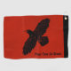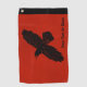 Eine einfache, schwarze Silhouette eines Raven (Corvus corax) auf einem roten, lederfarbenen Hintergrund. Das Rabe-Bild hat einen leichten "rauen" oder "abgenutzten" Effekt. Fügen Sie Ihren eigenen Text hinzu.
