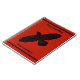 Eine einfache, schwarze Silhouette eines Raven (Corvus corax) auf einem roten, lederfarbenen Hintergrund. Das Rabe-Bild hat einen leichten "rauen" oder "abgenutzten" Effekt. Es gibt zwei Orte, an denen du deinen eigenen Text hinzufügen kannst.