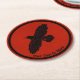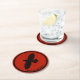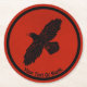 Eine einfache, schwarze Silhouette eines Raven (Corvus corax) auf einem roten, lederfarbenen Hintergrund. Das Rabe-Bild hat einen leichten "rauen" oder "abgenutzten" Effekt. Fügen Sie Ihren eigenen Text hinzu.