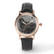 Uhr, Klassische Damenuhr mit schwarzen Lederarmband