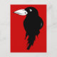 Zeichn von einer schwarzen Krähe mit Sprungfedern und einem großen weißen Schnabel. Es scheint über etwas zu lächeln.