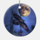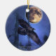 Ein schwarzer Spirit Raven fliegt vor einem riesigen Vollmond. Leistungsstarkes Bild mit einer spirituellen Botschaft.