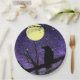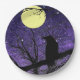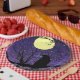 Eine Silhouette des Vogels und nackter, webartiger Äste. Es könnte Rabe, Krähe oder Rok sein. Der Mond und die Sterne am Himmel. Drücken Sie "Anpassen", um die Farbe des Hintergrunds zu ändern.