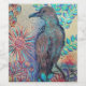 Gemälde eines Raben oder Krähen auf gelbem Hintergrund mit blauen Blätter und roten Blume