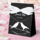 Zwei elegante Raben auf einem Ast sind der perfekte Weg, um Ihre gotische Hochzeit zu feiern. Die Silhouetten sind in schwarzem Kontrast. Auch toll für eine Halloween Hochzeit.