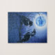 Raven's Moon Puzzle zeigt zwei Raben, die im Mondlicht miteinander zu reden scheinen. Originelle Kunstarbeit von Lora Duguay aus Öl auf Leinwand.