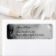 Eine editierbare Rücksendebeklemmenvorlage mit schwarzen antiken Schriftzeichen für Ihren Namen und Blockbriefen für Ihre benutzerdefinierte Adresse gegen einen unheimlichen Halloween-Himmel mit gotischen Raben und mondbeleuchteten Wolken in Schwarz und Weiß.