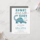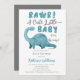 "Rawr! Ein Niedliches kleines Baby ist unterwegs!" Brachiosaurus Dinosaurier Babydusche Design in aquamarinem Blau. Alle Texte außer "Rawr!" und "Baby" sind editierbar. Enthält eine qr-Code-Vorlage auf der Rückseite für die Babyregistrierung. Design ist auch ohne QR Code über separaten Kauf in unserem Shop erhältlich. Composite Design von Holiday Hearts Designs.