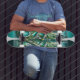 Das "Raygun Gothic Futuristic Urban Park Deck" ist eine Skateboardgrafik, die die harmonische Mischung von urbanem Leben und Natur in einer futuristischen Welt veranschaulicht. Dieses Design präsentiert einen lebendigen Stadtpark, eine grüne Oase inmitten des Stadtumfelds mit üppiger Vegetation, interaktiven Wasserelementen und einer Öko-freundlichen Technologie. Der Park ist in der Raygun Gothic-Ästhetik gestaltet und verbindet natürliche Elemente mit modernem urbanem Design. Es dient als ein entspannender und lebendiger Raum, in dem die Stadtbewohner Freiräume und moderne Annehmlichkeiten genießen können. Die Atmosphäre des Parks vereint Ruhe und städtische Energie, ergänzt durch integrierte Beleuchtungssysteme und intelligente Kontrollen in der Umwelt. Die Farbpalette urbaner Gräber, lebendiger Grüntöne und sanfter Blues prägt perfekt das Wesen dieses zukunftsorientierten Stadtparks und symbolisiert eine Welt, in der Technologie die natürliche Umwelt und das Wohlergehen der Gemeinschaft fördert.