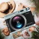 Retro Kamera grad Party laden mit Ihren Veranstaltungsdetails, Foto und Logo.