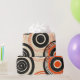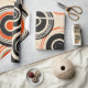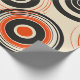Dieses Werk weist ein auffallendes Muster von konzentrischen Kreisen in unterschiedlichen Größen auf, die über einen neutralen cremefarbenen Hintergrund angeordnet sind. Das Design ist in fett schwarz und lebhaft orange gehalten, wodurch ein starker visueller Kontrast entsteht, der sofort Aufmerksamkeit erregt. Die Kreise sind geschichtet und miteinander verbunden, wobei einige Linien von Hand gezeichnet werden, was der Komposition ein dynamisches und leicht unregelmäßiges Gefühl verleiht. Die Wiederholung von Rundformen und das Retro-Farbschema rufen ein Gefühl des modernen Designs aus der Mitte des Jahrhunderts hervor und verleihen dem Stück eine zeitlose, aber spielerische Qualität.