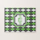 Raute geht 8-Bit Retro mit diesem grünen, grauen, weißen und schwarzen Farbschema, das wieder zu den Arkadespielen der alten Schule zurückkehrt. Passen Sie das Monogramm mit den entsprechenden Initialen für eine personalisierte Touch an.