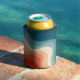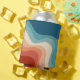 Geometrische Muster-Abbildung im Retrostil mit roten, orangefarbenen, blauen und türkisfarbenen Streifen