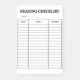 Reading Checklist Tracker Sheet