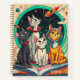 Journal in an illustration of four cats sitting on an open book, gazing at a rocket soaring through a cosmic backdrop. Each cat sports retro-futuristic space gear, blending vintage sci-fi charm with whimsey. The scene evokes wonder, adventure, and imagination fueled by books.