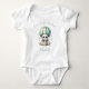 This cute baby bodysuit features a watercolor illustration of a panda in a mint green hot air balloon surrounded by flowers. Above, the words "I'm ready for adventure!" appear in mint green handwriting script. Personalize with baby's name below.