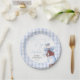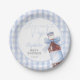 These fun baby shower photo paper plates feature a retro soda bottle with a pretty blue bow and can be personalized with your name and special date. Designed by Thisisnotme©