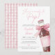 This fun baby shower invitation features a retro soda bottle with a pretty pink bow and can be personalized with your details set in stylish typography. The reverse features a pink gingham background. Designed by Thisisnotme©
