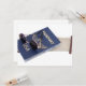 Blauer Pass, der für Reisen zwischen den Grenzen benötigt wird, eine Hängematte zwischen zwei festen Gegenständen und eine Sonnenbrille, die für den Urlaub bereit ist