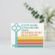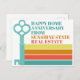 Coole, kundenspezifische Postkarte für das Anwesen mit coolem Retro-Streifen und niedlichem aquamarinen Hausschlüssel. Passen Sie diese Vintage Happy Zuhause Jubiläumspostkarte mit Ihren Immobilieninformationen in Orange und Rot wie ein Sonnenuntergang an.