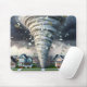 Ein riesiger Tornado aus wirbelndem Geld dominiert ein Vorstadtviertel und schafft eine surreale und chaotische Szene.