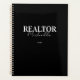 A black modern real estate agent name planner design featuring a stylish script typography. A lovely realtor custom gift.