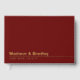 Real Foil Simple Modern Gold Script Wedding Guest Books bietet elegante moderne Goldskripttypografie mit Ihren Namen und Hochzeitstermin unten auf bordeauxrotem Hintergrund. Fügen Sie Ihren eigenen Text auf den Rücken des Gästebuches. Erstellt von Evco Studio www.zazzle.com/store/evcostudio
