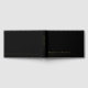 Real Foil Simple Modern Gold Script Wedding Guest Books bietet elegante moderne Goldskripttypografie mit Ihren Namen und Hochzeitstermin unten auf schwarzem Hintergrund. Fügen Sie Ihren eigenen Text auf den Rücken des Gästebuches. Erstellt von Evco Studio www.zazzle.com/store/evcostudio