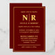 Beginnen Sie Ihre Hochzeitsfeier mit unserem Real Gold Foil Elegant Wedding Monogram Modern Foil Invitation, einer perfekten Mischung aus klassischer Eleganz und moderner Eleganz. Diese Einladungen sind perfekt gestaltet und sollen Ihren Gästen einen bleibenden Eindruck vermitteln. Mit einem Monogramm-Design mit echter Goldfolie strahlen unsere Einladungen zeitlosen Charme und Luxus aus. Die Bräunungs- und Bräutigam-Initialen fügen eine persönliche Touch hinzu, sodass jede Einladung für Ihre Liebe einzigartig ist. Diese Einladungen sind modern und minimalistisch eingerichtet und eignen sich perfekt für Paare, die Einfachheit und Eleganz schätzen. Das dunkelrote und goldene Farbschema sorgt für Wärme und Reichtum und eignet sich ideal für einen luxuriösen Frühling, einen Sommer oder eine Hochzeit im Herbst. Diese Einladungen mit eleganten goldenen Rahmen verleihen dem Ganzen den Set für eine elegante und stilvolle Affäre. Sie sind die ideale Wahl für Paare, die mit ihrem Hochzeitsgeschirr gewollt haben, eine Aussage zu treffen. Feiern Sie Ihre Liebe stilvoll mit unserem Real Gold Foil Elegant Wedding Monogram Modern Foil Einladung, die perfekte Einladung für eine unvergessliche Hochzeitsfeier.
